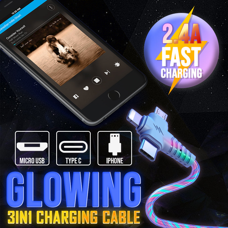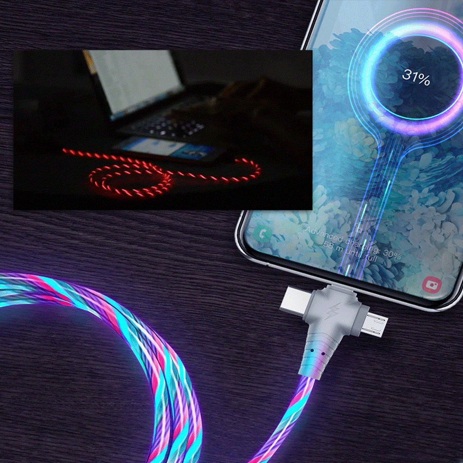 LED Glowing Cord displays your charging status with a visible flow of glowing light.